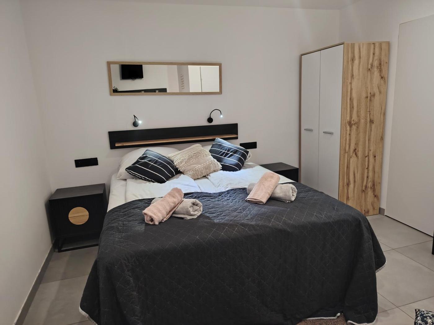 Studio. The studio includes a private bathroom equipped with a shower, a bidet and a hairdryer. Guests can make meals in the kitchenette that comes with a stovetop, a refrigerator, kitchenware and a microwave. Featuring an outdoor dining area, this studio also provides a wardrobe, an electric kettle and a flat-screen TV. The unit offers 2 beds. Studio - 3 osobowy. Powierzchnia pokoju ok.: 24 mkw. ;